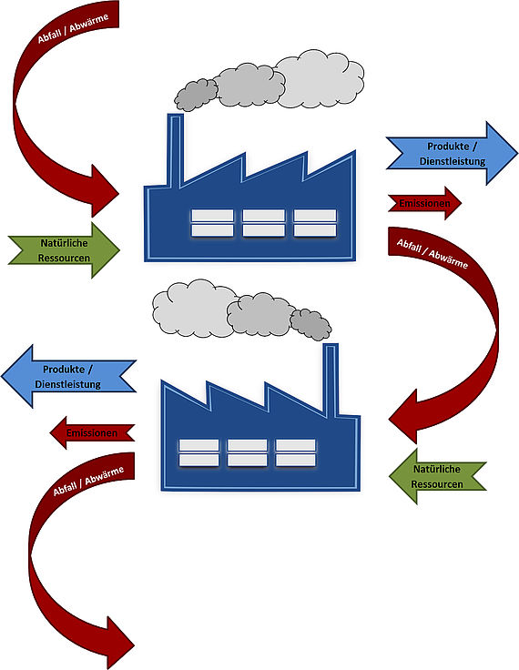 Nutzt ein Unternehmen oder eine Branche die Nebenprodukte (Energie, Wasser, Biomasse, Logistik, etc.) eines/einer anderen, so spricht man von industriellen Symbiosen. Im Hinblick auf Ressourceneffizienz, die Förderung einer komplexen Infrastruktur sowie regionale Vernetzung, ergeben sich auf diese Weise für alle Akteure wichtige ökonomische und ökologische Vorteile.